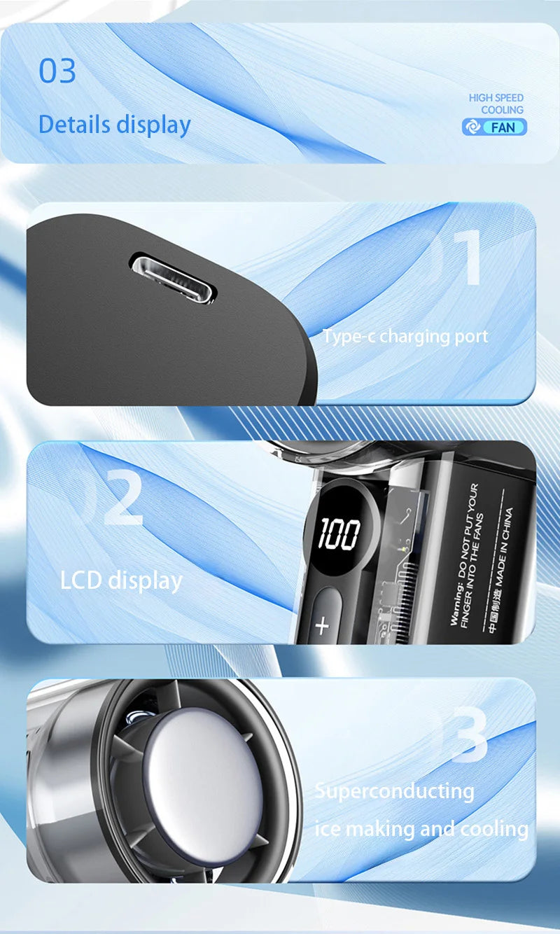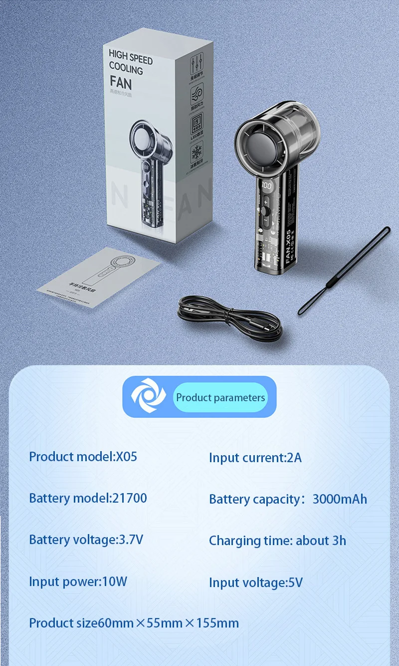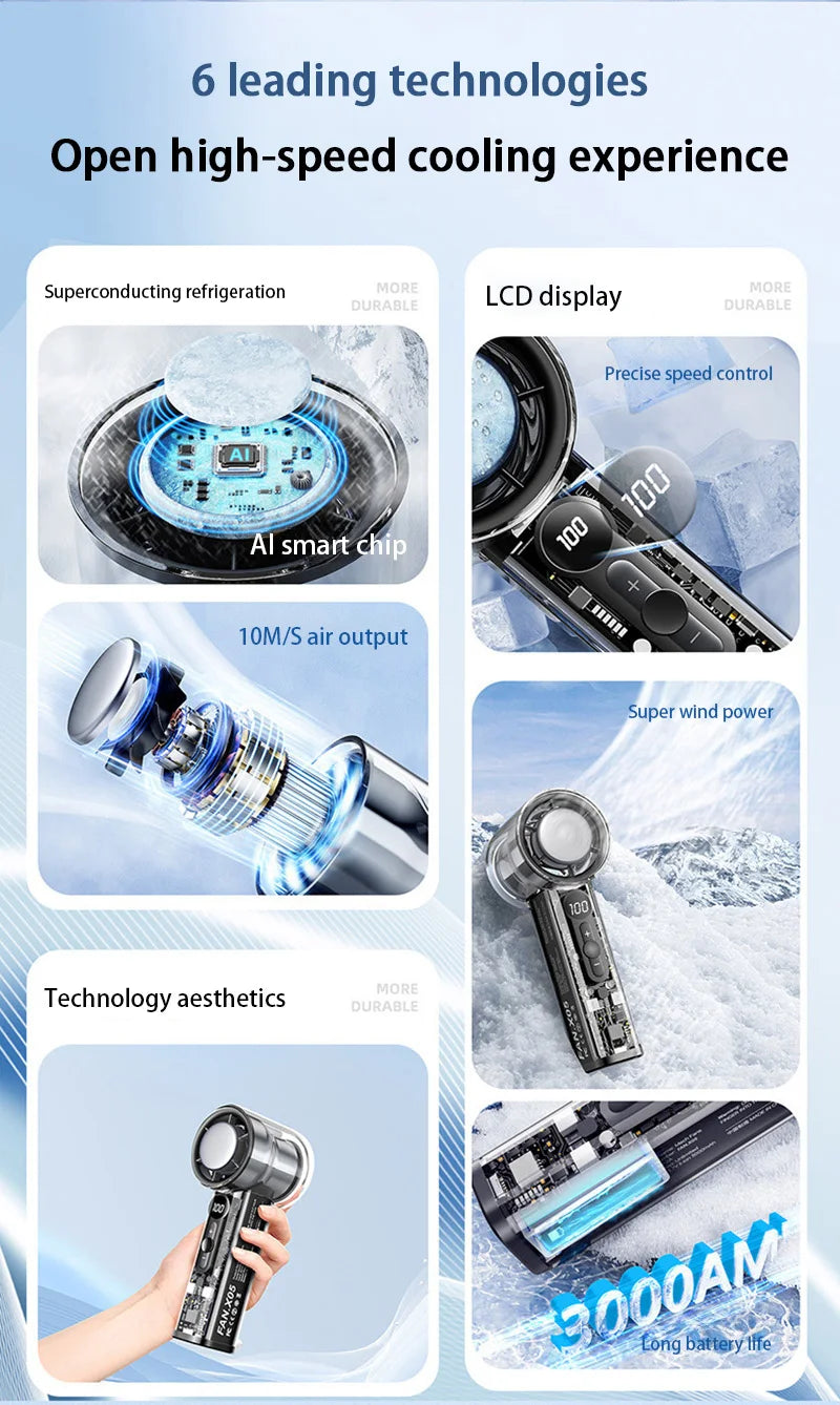 Vertek Mecha 100-speed Fan USB 20000RPM Violent Turbine Fan Handheld Refrigeration Ice Compress Fan Camping Travel